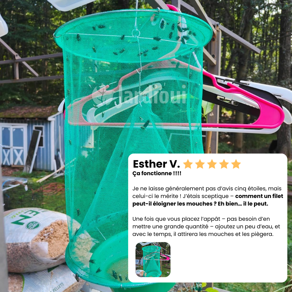 Remplissez, suspendez, et laissez-le agir - en quelques heures, il commence à capturer les nuisibles. Déjà adopté par des milliers d'utilisateurs satisfaits, c'est la solution idéale pour éliminer durablement les mouches et retrouver votre confort au quotidien.