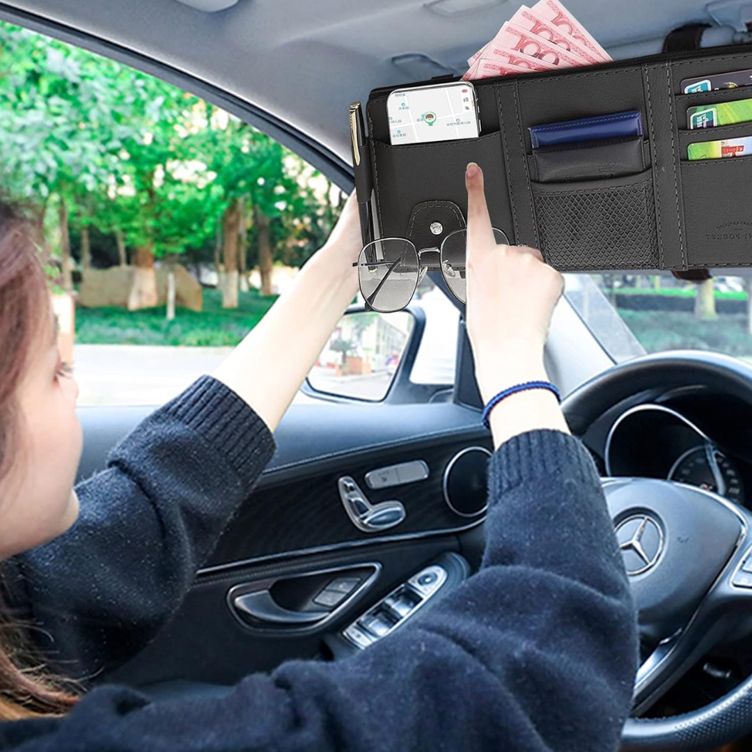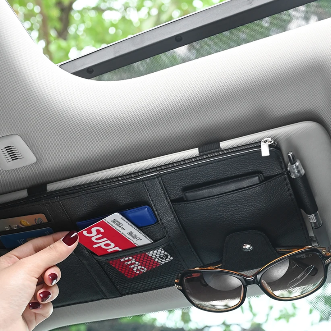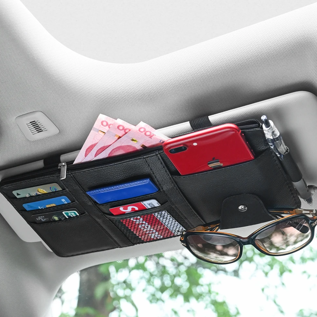 Grâce à sa disposition ingénieuse, cet organisateur transforme votre pare-soleil en un centre de rangement ultra-accessible.